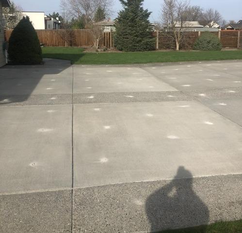 Driveway void fills start by laying out a "grid" of injection ports that the crew drills. The 3/8 inch port holes are placed 3-5 feet apart to insure the best coverage of the PolyLevel. Then when the installation is complete the injection holes are filled and virtually undetectable.